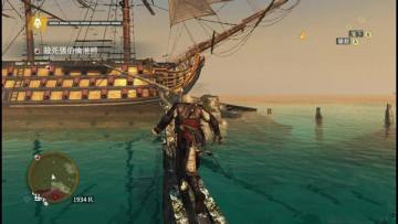 3、然后我们等到超过敌人船只一个船身的时候就离开船只控制从左右方向的绳子跳过去,大家可以不用担心回不去,当我们登船的时候,都会停船的。
