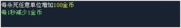 等级2:每杀死任意单位增加100金币(副作用每1秒减少1金币)