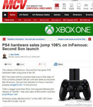 国外游戏媒体网站mcvuk最近报道了一篇文章,其中讲述在索尼PS4独占游戏《恶名昭彰 次子》的带动下,英国本周PS4主机硬件销量较上周暴涨106%,相比较而言,微软XBOX ONE独占游戏《泰坦陨落》发售当周,其主机硬件也增长了96%,足见独占游戏在玩家眼中还是有一定号召力的,可以吸引他们购入全新主机。