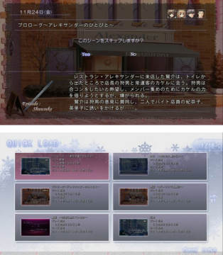 游戏系统中搭载有场景跳过功能,所以已经玩过一周目的玩家也可简単进行再次体验。右上角图标显示登场角色的地方很是直观方便。顺便说一下,新作中储存槽包括快速保存总计有60个,所以不会不够用。