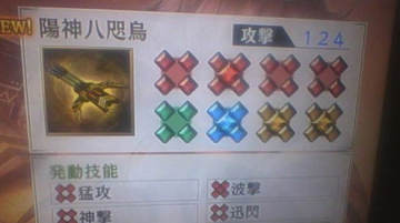 怪名:八咫乌。八咫乌即中国文化中的三足乌,是太阳的化身,在神武天皇东征时曾经为他引路。元就的武器以它命名,应该是因为神武天皇的根据地与毛利家领地基本重合,另外传说中元就每天会对着朝阳念佛。