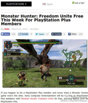 根据国外游戏网站siliconera的报道,Capcom为纪念怪物猎人系列诞生十周年,从2014年3月25日起,旗下PSP经典游戏《怪物猎人P2G》将在PSN美服商城免费提供下载,该作数字下载版支持PSV掌机,各位PSV美服玩家不要错过。此外怪物猎人十周年纪念活动将于4月21日正式开启,相信届时会有更多爆料,敬请期待。