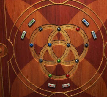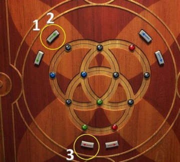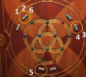 (仔细观察三个环,和对应的左右箭头的颜色,不难看出要打开锁必须将小球移到对应的圆环处)