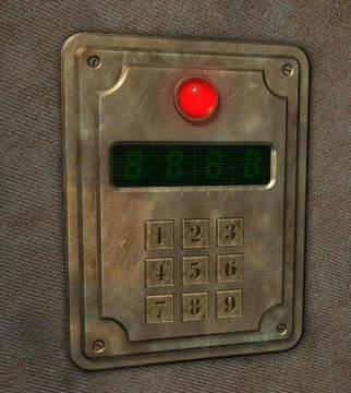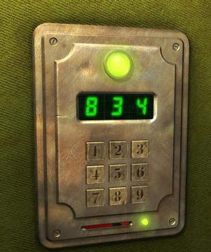 刚开始游戏,没有任何工具,也看不出按键的新旧,自然无法知道密码,左手边的门上锁了,正门又不通,于是走向右手边的门
