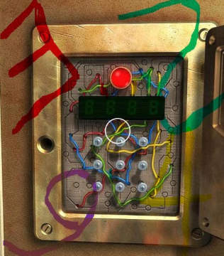 第七把锁:电路拼接锁(红色的木门边的四位密码锁,那个电阻一定就是用在这里了,