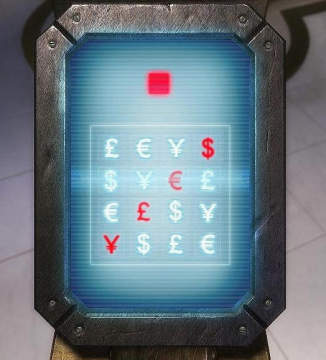 打开美元符号保险箱,得到一张纸,上面写着L=E,并且请拉下手柄,三连锁的各个谜题出现。