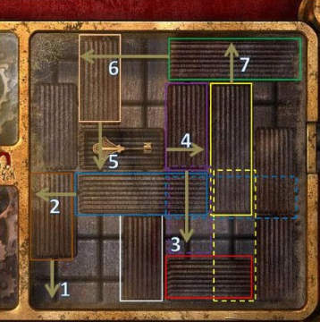 第一步:黄色长方形内的垂直滑块仍然挡住了去路,它必须在虚线所示的位置。