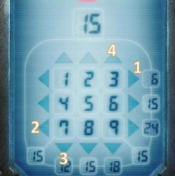 其它自己推,按遍所有按键到达目标-红色的那个按键,采用倒推的方法把顺序记下来,然后反过来依次按下15个键很容易就能解出来,见图)