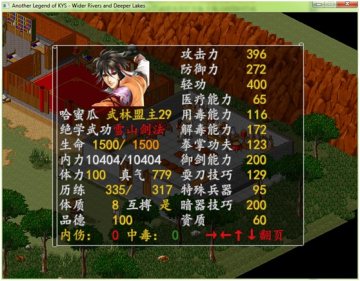 回城休整后再上黑木崖战任我行拿葵花,主角回家修炼.(葵花在手,天下我有!!).之后特系的兵器值也超过30了,练斗转吧,主角终于成为强人了.(话说400轻功的主角地图上走路不是一般的快)