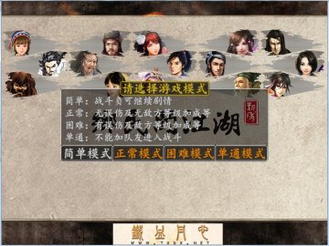 正常难度:对应于前面版本的简单难度,但难度大幅降低,战斗中没有等级加成,另外伤害公式也做了修改(设定为原先的2/3),还有升级需要的历练值也较后两个难度少等等。不想自虐的适合这个难度。