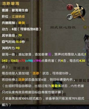 4.浩渺碧海:这个普通招式黄霸体,给敌人加浩淼状态。攻击距离6-7码,这个招在白浪之后接。可以有效抵抗雪斋的拍倒,打狗的挑飞。伤害也不错,白浪之后跑开用这继续输出。
