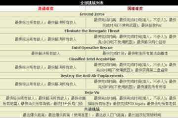 在《合金装备5原爆点》中,共有七个挑战任务,普通难度和困难难度的挑战项目有所差别,困难难度的挑战项目更为复杂,基本上均要求最快完成时间潜入,并且不杀人,下面给大家分享的就是《合金装备5原爆点》挑战项目各难度攻略。
