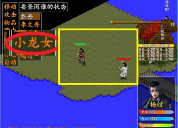 6,蝴蝶谷对话,然后去绝情谷开箱子拿君子剑(主角装上),淑女剑(忽兰带上),存档,拿断肠草,杀李莫愁。(这关主要是田伯光远处放暗器,胡斐血刀,段誉吸内力,李文秀点穴,这关的忽兰很能抗,美女拳法杀李莫愁450+,杀李莫愁不难了。)杀完主角升级到级到13级。拿到断肠草去剑冢收杨过,这个地方加道德好像,现在道德为59。踢掉段誉吧。剑冢右下方房间拿紫薇软剑,回家杨过学习玄铁剑法,蛤蟆功,北冥神功。