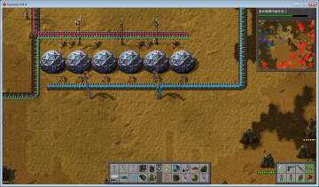 这个图结合下个图看,铜矿合并到铁矿最上边,一样运行良好,三条线,一切产品,全搞定。