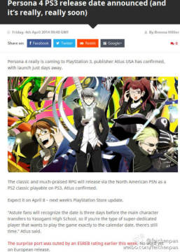 经典RPG游戏《女神异闻录4》登陆PSN数字商城 来源: 飞翔小编feichenpan 2014/4/4 20:45:24 浏览量:513 根据国外著名游戏媒体vg247的情报显示,PS2末期经典RPG游戏《女神异闻录4》将作为PS2 CLASSIC登陆PSN数字下载商城,各位PS3玩家可以重新回味这款佳作。ATLUS美国分公司确定《女神异闻录4》将于2014年4月8日上架发售,值得一提是本作只属于PS3主机使用的PS2数字版游戏,无奖杯,无高清优化。