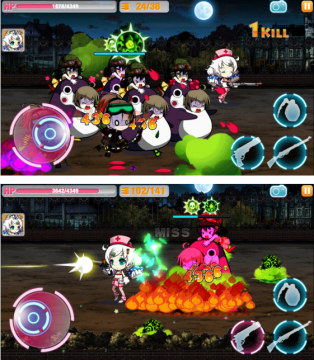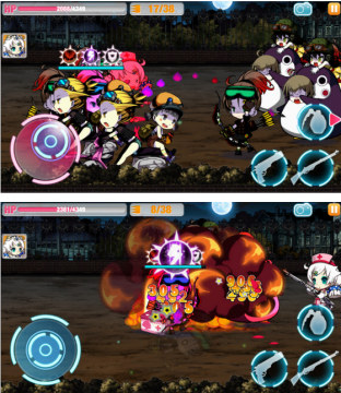 进入副本,出现第一波杂鱼,说实话杂鱼并不难对付,无非就是弓箭手+企鹅+双人摩托,双人摩托什么的只要站在屏幕左边上下走,它们就会自动不见了。