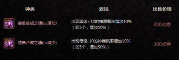 3.放入【装备合成之魂(Lv增加)】,提升等级的概率增加且等级将固定为+10。加入越多概率越大;放入【装备合成之魂(Lv减少)】,降低等级的概率增加且等级将固定为-10。加入越多概率越大;