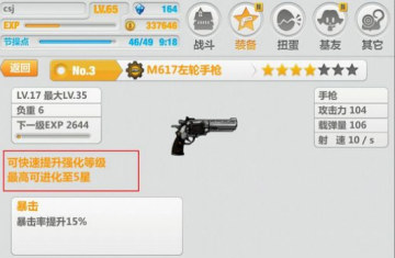 手枪分2种,1.速射型,2.慢射高伤害型。速射型可高达10发/s,射击速度理论值比自动步枪还快,伤害也比自动步枪还高,但是也得你按的了这么快!慢射高伤害型,伤害非常高,快赶上狙击的伤害了。缺点射速慢了点。弹药少了点。