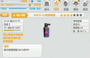 喷雾,目前来说只有加血一个用处。后期用来推BOSS 推荐拿个,缺点就是 负重高了点