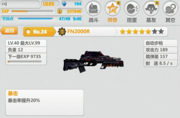 自动步枪,射速快8发/s 刷图必备啊。就伤害来说单攻最高不为过。虽然现在FN2000R消弱了点,但还是推荐优先刷出来。