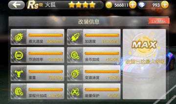 火狐购买和升级费用为48W+86W+4500钻,合计134W+4500钻,而其基本属性(最大速度、加速度和节油效率)只跟S级疾风差不多,所以小编认为还是入手一辆A车再升S比较划算!
