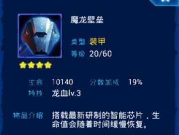 在《雷霆战机》中魔龙壁垒是相当给力的一款装甲,他的回血能力是所有装备无法媲美的。下面给大家简单解析魔龙壁垒的回血能力,希望对大家有所帮助。