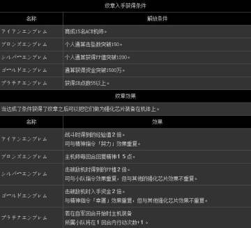 《第三次超级机器人大战Z时狱篇》游戏中按照一定条件可以入手五种纹章,玩家可以把这些纹章做为强化芯片装备在机体上获得不同效果,例如战斗时得到的经验值2倍,击破敌机时入手资金2倍等,这里给大家分享下《第三次超级机器人大战Z时狱篇》纹章入手方法和使用效果。