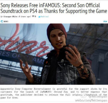 根据国外游戏网站dualshockers的情报显示,索尼为庆祝PS4独占游戏《恶名昭彰 次子》九天销量突破100万套,将与游戏开发商Sucker Punch合作,免费放出该作原声音轨OST供玩家下载。据悉《恶名昭彰 次子》OST包含29首游戏原声,目前只能在美服PSN下载,其大小为480MB,欧服PSN下载将于4月17日放出。