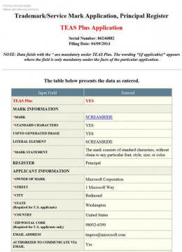 微软注册新作《尖叫骑行(Screamride)》游戏商标