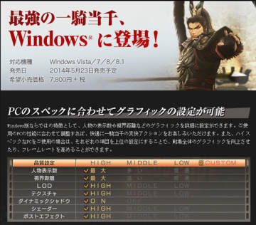 《真三国无双7with猛将传》PC版将于2014年5月23日正式发售,其除了包含PS3版本体内容外,还将收录部分DLC追加内容,现今光荣官方网站曝光了《真三国无双7with猛将传》PC版收录的DLC内容,其中包括特殊支援兽软饴赤兔马,讨鬼传天狐,张苞关兴JUMP20周年纪念特制服装,壁纸和系列BGM等,一起来看看吧。