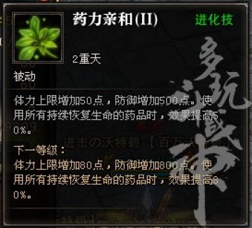 药力亲和,增加体力值和防御对于大部分职业来说还是有不错的效果的。