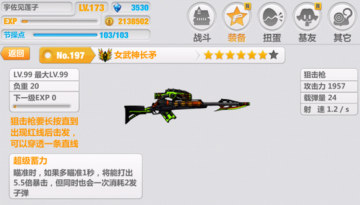 五星满级攻击1194,载弹20,暴击5倍。