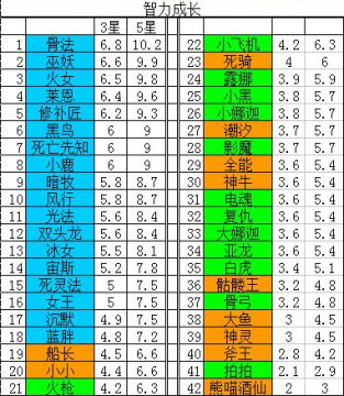 在刀塔传奇游戏中,英雄的智力和他所造成的法术伤害息息相关,下面给大家带来游戏中各英雄三星、五星的智力成长,以及这方面的一点分析。