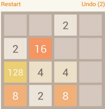 游戏开始,在4x4的棋盘上有两个数字,通过方向键移动它们。每次移动,棋盘上都会增加一个数字,相同的数字会相加合并到一起,你要做的就是拼出2084!