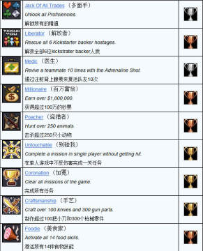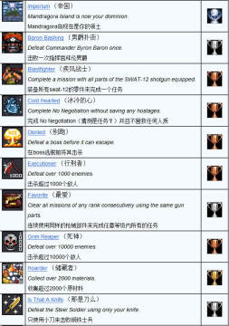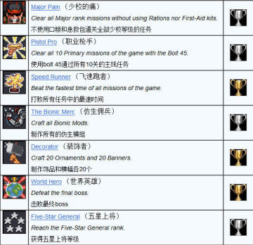 《佣兵之王》奖杯攻略列表: