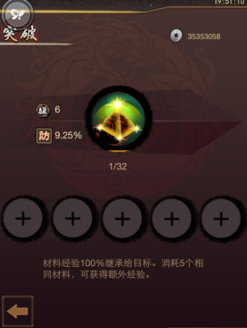 说明写:材料经验100%传承给目标,消耗5个相同材料,可获得额外经验。