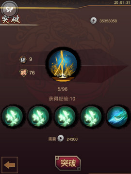 材料经验目前良品分为1、2点经验,上品为3点经验。神品不知道。。。因为我没有,猜测应该是4或者5点经验。每个要升级的材料所需经验也写明了,达到所需经验,必升级。这个优化玩过大掌门的玩家应该有体会,是个比较合理的改动。所以升级武技和兵法的童鞋们应注意以下几点:
