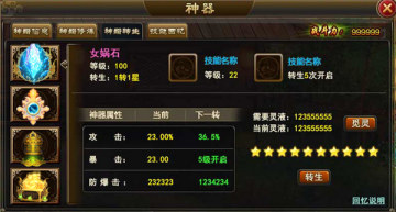 作为修仙路上最重要的战力武器,神器的功能一直是仙侠们最为重视的。为了进一步加强主角的能力,现在玩家可通过激活四大神器器魂后即可激活神器属性。每一个神器具备两种神器技能,而神器自身属性满级后就会升级至下一个阶段。