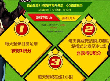 《自由足球》潮爆不删档已于4月23日开启了网吧不限号,在即将到来的五一小长假期间,我们为持续辛勤训练自由足球技能的足坛劳模们准备了“足坛劳模红包大派送活动”。