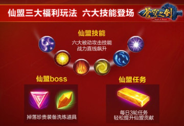 「苍穹之剑3D」的仙盟系统从来都是仙友们收获革命友谊的胜地,所以仙盟玩法的每次更新都备受期待。在即将迎来的新版本中,仙盟系统全新开启六大被动技能,战力指数可谓直线飙升。而身在仙盟的仙友们,不仅能在每日3轮的仙盟任务中获得不菲仙盟贡献值,还能挑战仙盟BOSS,获得珍贵的装备洗炼道具。