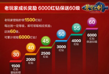 福利版还特意针对新老玩家推出了成长奖励。玩家随着等级的提升,可以在游戏中领到和自己等级相对应的红钻奖励。达到60级后,将领到总计高达6000红钻的奖励,可谓保送60级。值得一提的是,对于近期没有登录游戏的老玩家来说,只要登录游戏,即可领取海量红钻及各种道具奖励,可谓“一秒变土豪”!