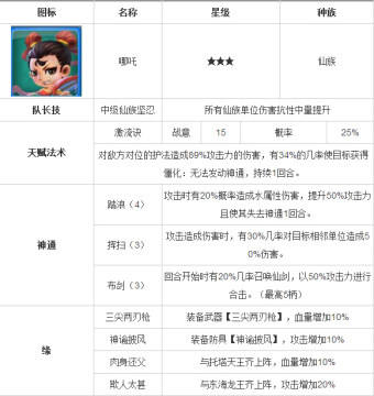 哪吒在这款游戏中是输出过度型护法,他的基础属性和攻击神通都不错,但是由于他是三星级的,所以不是很突出潜力也不是很大,在后期我们要换下去的。