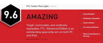 总结: 《超越光速高级版》是一款具有超高耐玩度的游戏,每一次游戏都会给我带来一些难忘的记忆和奖励,即使是全军覆没也会有所收获。iPad版非常出色,因为完整继承了PC版的紧张抉择和不可预测。PC版的操作非常快速准确,但iPad版也很流畅,虽然略逊一筹但相差无几。