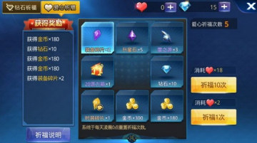 玩家一天是可以使用钻石祈福20次的,而爱心祈福就只有10次,系统于每天的凌晨0点重置祈福次数,奖品将以邮件的形式发送。