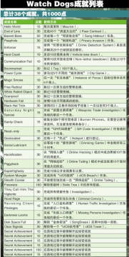 《看门狗》奖杯成就攻略详解 来源: 飞翔小编 2014/5/4 16:05:08 浏览量:576 育碧新作《看门狗(Watch Dogs)》即将上市发售,该作主机版包含奖杯成就系统,玩家需要在游戏中满足特定条件才可以解锁成功,这里给大家分享下《看门狗》奖杯成就攻略。《看门狗》成就攻略列表,奖杯攻略同样适用: