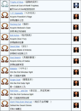 PS3经典游戏《战神1+2合集》近日登陆PSV掌机平台,该作包含奖杯系统,玩家需要在游戏中满足一定特定条件才可以解锁奖杯,这里给大家分享下PSV《战神1+2合集》奖杯攻略详解。