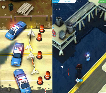 《飙车飞盗》在玩法上就要略显单调了,因为游戏重点不在“飙”字上,而在“盗”字,所有要一直不停的逃跑,而且奔跑的同时进行破坏才是重点。但是游戏中车子的速度根本跑不快,没有任何加速功能的设置,这对游戏是一个致命的减分项。赛道的距离不是很长但却没有终点,更多的时候是在一直的转弯、绕圈,时间长了很容易产生乏味感。当然,《飙车飞盗》也有自己的优点,玩家除了可以驾驶自己的普通轿车外还可以偷盗警车、武装车、坦克甚至还有快艇,不同类型的车辆拥有不同的攻击伤害,想要体验更加刺激的撞击效果就得不断的进行游戏,丰富的道具系统也是游戏的一大亮点,只是设定了等级限制有些让人不爽。除了追捕模式,玩加还可以参加一些比赛以获得更多的金钱进行车辆改造升级,获得更加威力的赛车。