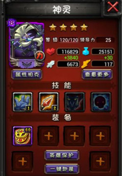 神灵配置装备:振奋之心(紫装+60),普通攻击力增加3840点
