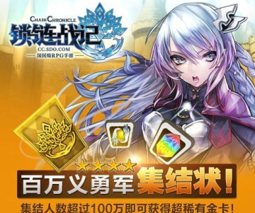 5月9日卡牌手游《锁链战记》正式开启国服首测,近日国服首测激活码已经开始发放,官方将通过手机短信及媒体发码的形式发送游戏首测激活码。并与此同时开启了百万义勇军集结状活动,详情如下。
