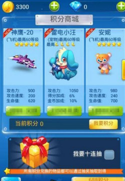 获得积分有什么用呢?在新版本中,积分可是万能的好东西!大家再也不用担心没有钻石而获取不到强力的战机宠物,只要使用积分即可兑换“积分商城”中上架的战机或宠物!